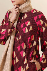 Classic-fit printed shirt with a round neckline and buttoned front placket. Paired with printed farshi shalwar for a coordinated look.