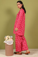 A classic-fit printed short shirt with a round neckline and V-slit, adorned with tassel detailing. Paired with matching printed culottes for a coordinated look.