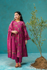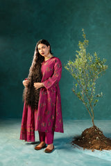 A fitted panelled shirt inspired by cheent gulaab prints and Rosette chattas on jacquard with gold sequin and bead detailing on sleeves hems and V neckline. Paired with a solid straight fit trouser and slip and jacquard dupatta with similar floral motifs and ghungroo detailing on dupatta hemline.