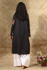 Statement printed shirt defined by a clean V-neckline and bold motif artwork, finished with a distinctive button accent at the neckline. Cut in a straight silhouette.