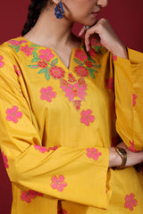 Embroidered classic-fit shirt with a round neckline and v-slit, accented with cross-stitch embroidery along the neckline and delicate embroidered motifs all over. Paired with a classic-fit shalwar for a cohesive look.