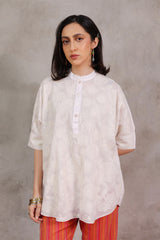 An embroidered top featuring a band neckline and buttoned front placket. Can be paired with any Generation bottom.