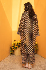 Paneled printed classic-fit shirt with a round neckline, adorned with delicate mukaish detailing on the bodice. Paired with coordinated printed culottes.