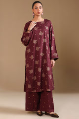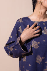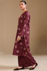 Classic-fit printed shirt with a square neckline, adorned with gota lace detailing along the neckline and sleeve hems. Paired with matching printed culottes for a look that blends tradition with modern ease.
