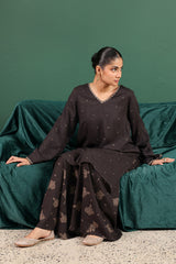 A classic-fit printed shirt with a V-neckline, adorned with delicate embroidery along the neckline and sleeve hems. Paired with printed flared trousers for an effortlessly graceful look.