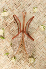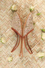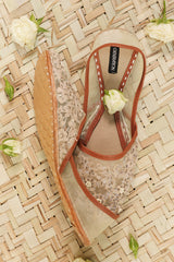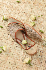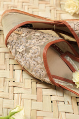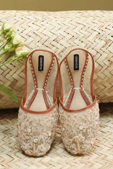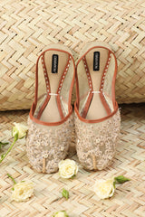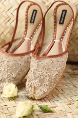 khussa with a floral-embroidered net upper and delicate bead detailing, Soft leather lining and fine trims for all-day comfort and style.