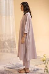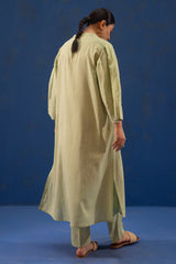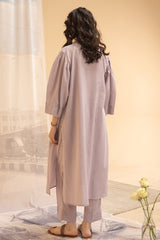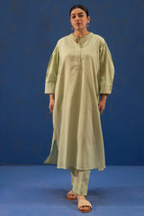 Classic-fit shirt with a low band neckline and buttons accenting the front placket. Designed with softly structured balloon sleeves that add volume and a modern edge. Paired with straight-fit trousers.