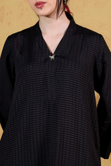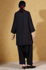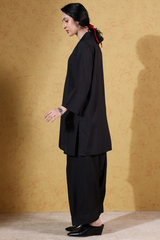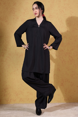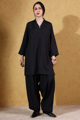 Classic-fit shirt with a V-band neckline, adorned with delicate butterfly embellishment. Paired with a matching classic-fit shalwar.