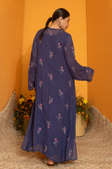 Hand-crafted paneled shirt with a round neckline and loop buttons along the front slit, detailed with hand stitching and highlighted with French knots. Comes with an inner for added comfort and ease. Paired with coordinated culottes.