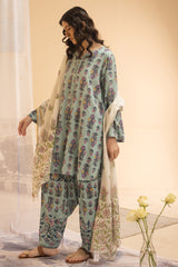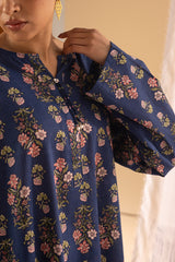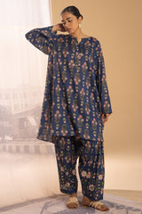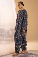 Printed classic-fit shirt with a round neckline and V-slit, delicately finished with tassel detailing. Paired with a coordinated printed classic-fit shalwar.