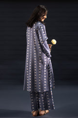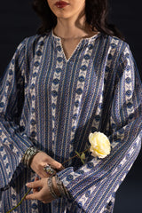 Classic-fit printed shirt with a round neckline and V-slit, adorned with delicate crochet lace detailing. Paired with matching printed culottes.