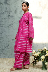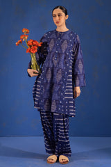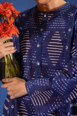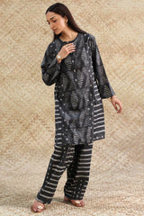Shibori-printed classic-fit paneled shirt with a round neckline and buttoned front placket. Paired with a coordinated printed classic-fit shalwar.
