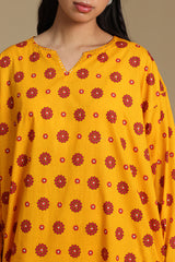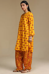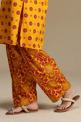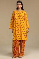Classic-fit printed shirt with a round neckline and V-slit, delicately adorned with Mukaish work. Paired with a coordinated printed classic-fit shalwar.