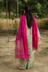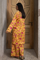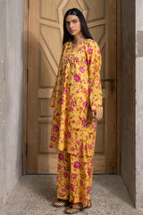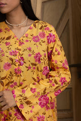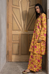 Floral-printed classic-fit shirt with a V-neckline and loop buttons along the front slit. Paired with matching printed culottes.