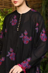 Embroidered classic-fit paneled kurta with a round neckline, featuring subtle pleat detailing and loop buttons along the front slit. Finished with lace along the sleeve hems. Paired with coordinated culottes. Comes with an inner for added comfort and ease, and styled with a dupatta finished with knotted tassel detailing.