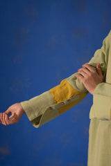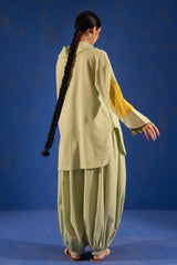 Relaxed-fit shirt with a collared neckline and easy drop shoulders. Finished with cuffed sleeve hems and a softly rounded shirt hem. Paired with a classic jasmine shalwar for a refined silhouette.