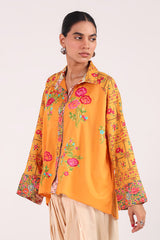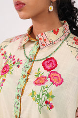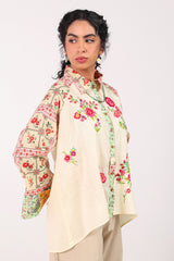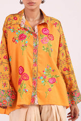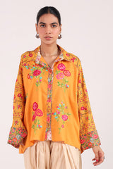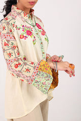 A button-down embroidered top with a collared neckline, vibrant embroidery, and patchwork detailing. Finished with cuffed sleeves, this easy and breezy style pairs effortlessly with any Generation bottoms.