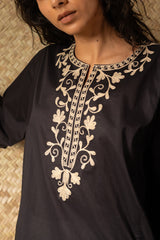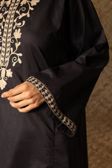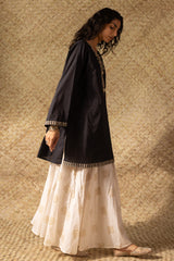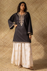 Embroidered paneled kurti designed in a relaxed silhouette, adorned with embroidery along the neckline in soft antique tones. Finished with wide sleeves and delicate embroidered borders for a balanced look. Style it with your preferred Generation bottoms.