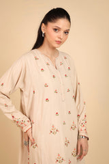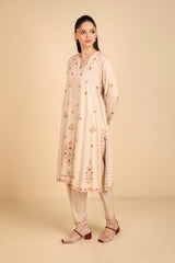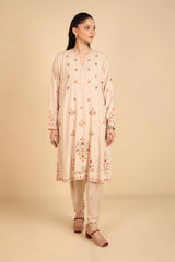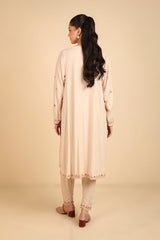 Embroidered panelled kurta with crochet details on sleeves, paired with solid pegged shalwar.