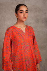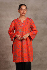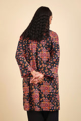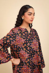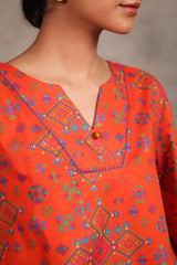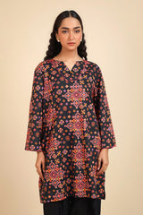 A loose-fit printed kurta featuring round neckline with v- slit enhanced by paris-stitch.