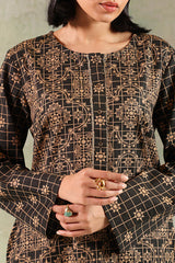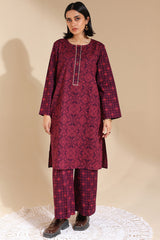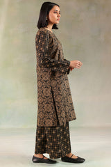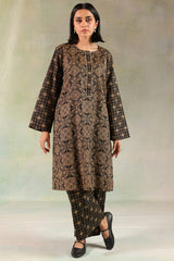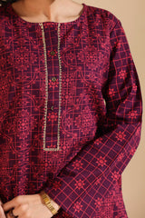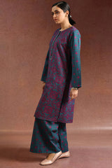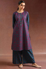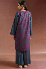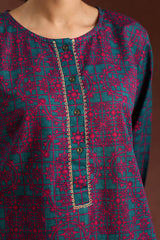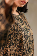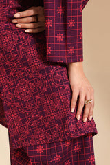 A classic-fit printed shirt with a round neckline, buttoned front placket, and subtle embroidered detailing. Paired with classic printed culottes for a coordinated look.