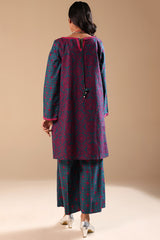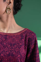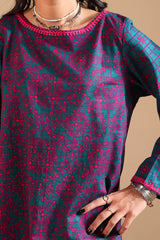 Classic-fit printed shirt with a round neckline, adorned with delicate embroidery along the neckline and sleeve hems. The back features a keyhole neckline detailed with embroidery and tassels. Paired with matching printed culottes for an effortlessly chic look.