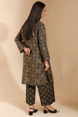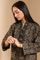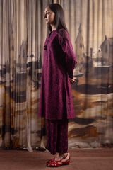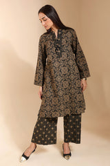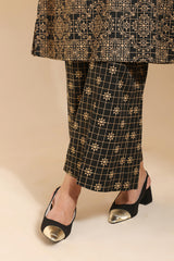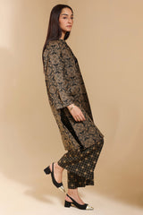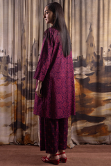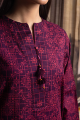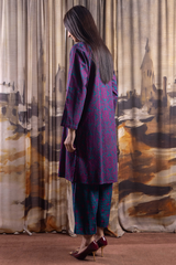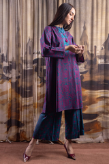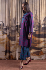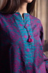 A classic-fit printed shirt with a round neckline and V-slit, adorned with tassel detailing. Paired with printed culottes for a coordinated look.
