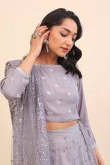 Embellished embroidered panelled net Lehnga, paired with PK rawsilk dori embroidered top and net heavily embellished dupatta.
