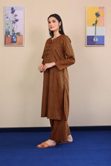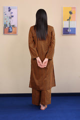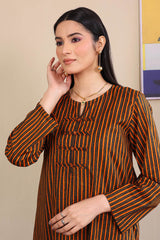 Printed striped shirt with button details on neckline, paired with printed matching culottes.