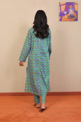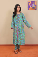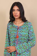 Printed straight shirt with tassels on neckline,paired with straight fit pants.