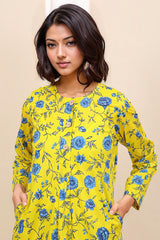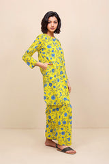 A loose fit printed shirt with crew neck and buttons on a thick placket, with full sleeves. Paired with a matching shalwar.