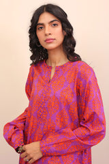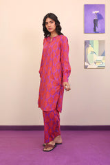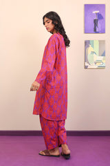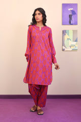 Printed round hemline shirt with cuff sleeves, paired with classic fit printed shalwar.