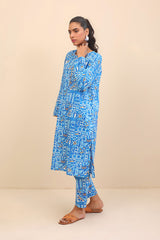 Printed shirt with buttons on placket, paired with straight fit pants.