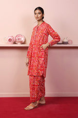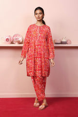 Printed shirt with side pockets and cuff sleeves. Paired with classic fit shalwar.