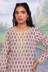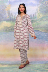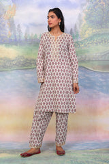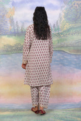 Printed straight fit shirt with gota details on shirt and matching shalwar with gota details.