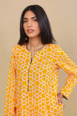 Printed, straight fit shirt with piping details and paired with printed culottes.