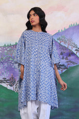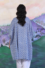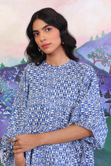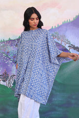 Printed loose fit Kaftan with cinched sleeves and buttons on front.