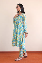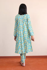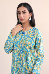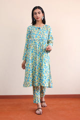 A printed shirt with A-line silhouette pleats on troso and full sleeves paired with straight fit pants.-Model is wearing size 8 and height is 5' 7''