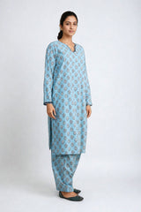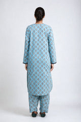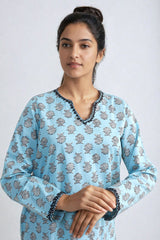 Printed loose fit kurta with dori embroidery details on neckline and sleeves, paired with classic fit shalwar.