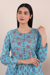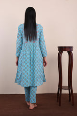 Print blocked shirt with gather details on waist and buttons on placket, paired with straight fit pants.