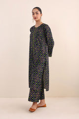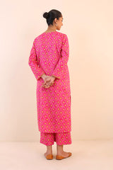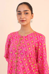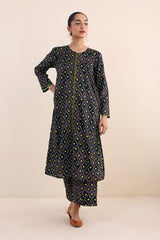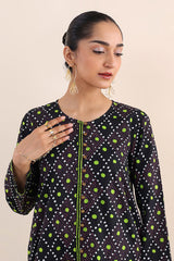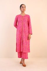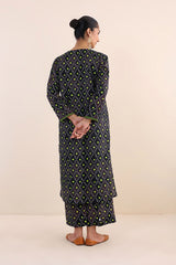 Printed, A-line front open shirt with button details. Paired with printed loose fit culottes.