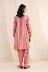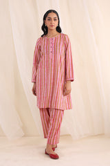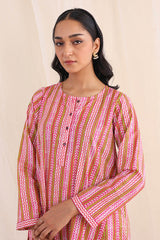 Printed, A-line kurta with button details on placket and paired with matching printed shalwar.