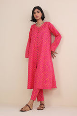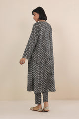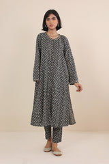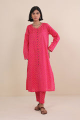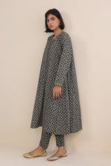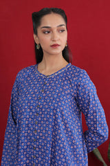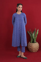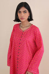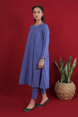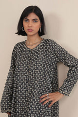 A-line Printed shirt with panels and front open details with buttons on placket along with dori embroidery details on neckline and sleeve hem.