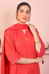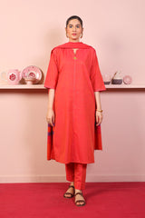 Boxy solid shirt with mukaish and hand embroideryd etails, paired with straight fit pants and yarn dyed dupatta.