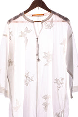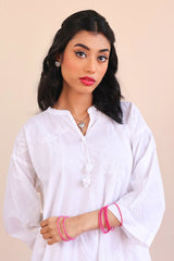 Botanic hand embroidered shadow work boxy kurta withtassel details on neckline.