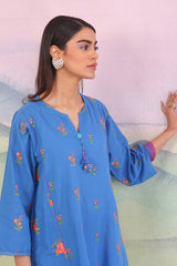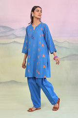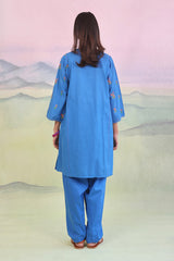 Embroidered panelled kurta with pintux lace details on side and tassels on neckline.