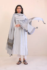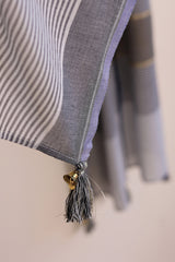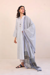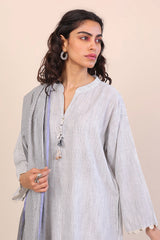 Yarn dyed striped Kurta with lace details on sleeves and tassels on neckline, paired with yarn dyed striped dupatta.
