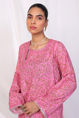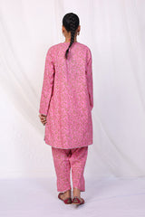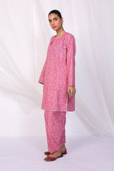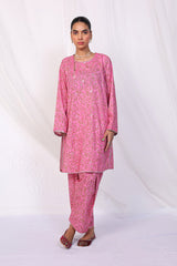 A printed co-ord set, with sequin work on neckline and loop cutout on shoulder. Paired with a sequined shalwar.