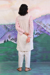 All over embroidered kurta on striped base, adorned with beads on sleeves and mirror work tassels on neckline.>br>