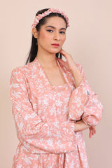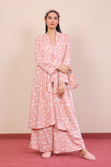 A comfy and breezy short slip, a long open front robe with tie attached. Paired with matching printed culottes. Accessories include a matching eyemask and scrunchie for the most comfiest sleeping experience.